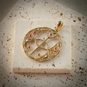 【Ruby & Emeralds】 Chalice Well Vesica Pendant (9K)